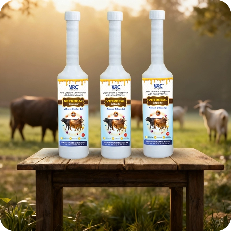 VetroCal Gel is an advanced calcium supplement for dairy animals that supports milk production, strengthens bones, and aids faster recovery after calving. Enriched with Calcium, Phosphorus, Vitamin D₃, and Honey, it ensures rapid absorption, prevents milk fever, and boosts overall animal health and productivity.
