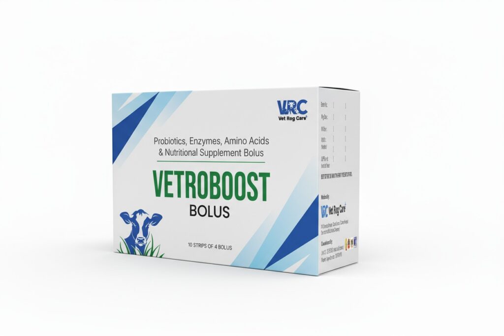 Vetraboost is a powerful bolus supplement specially formulated to ignite appetite, enhance digestion, and boost performance in cattle, horses, sheep, and goats. Enriched with probiotics, enzymes, and essential amino acids, it keeps your animals’ gut healthy, ensuring better feed utilization, faster recovery, and higher productivity every day.